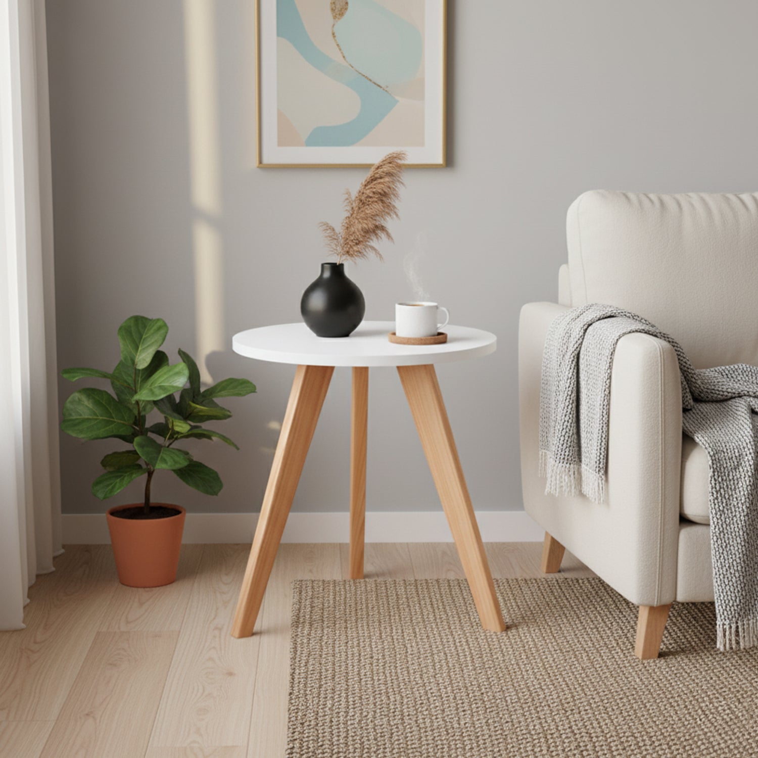 Descubre la elegante y funcional Mesa Auxiliar Nórdica de Raíces Collection. Hecha en Colombia con materiales de alta calidad, este versátil mueble se adapta a cualquier estilo decorativo. Con suficiente espacio para tus libros, revistas y bebidas, es la elección perfecta para aquellos que valoran la calidad y el diseño en sus muebles.